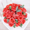 роза оранжевая – 23 шт., зелень декоративная (эвкалипт), оазис, коробка.